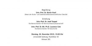 Am Dienstag, den 29. November 2019 um 19 Uhr, findet die Antrittsvorlesung von Univ.Prof.in MMag.a Dr.in Christina Antenhofer im Hörsaal 381 statt.